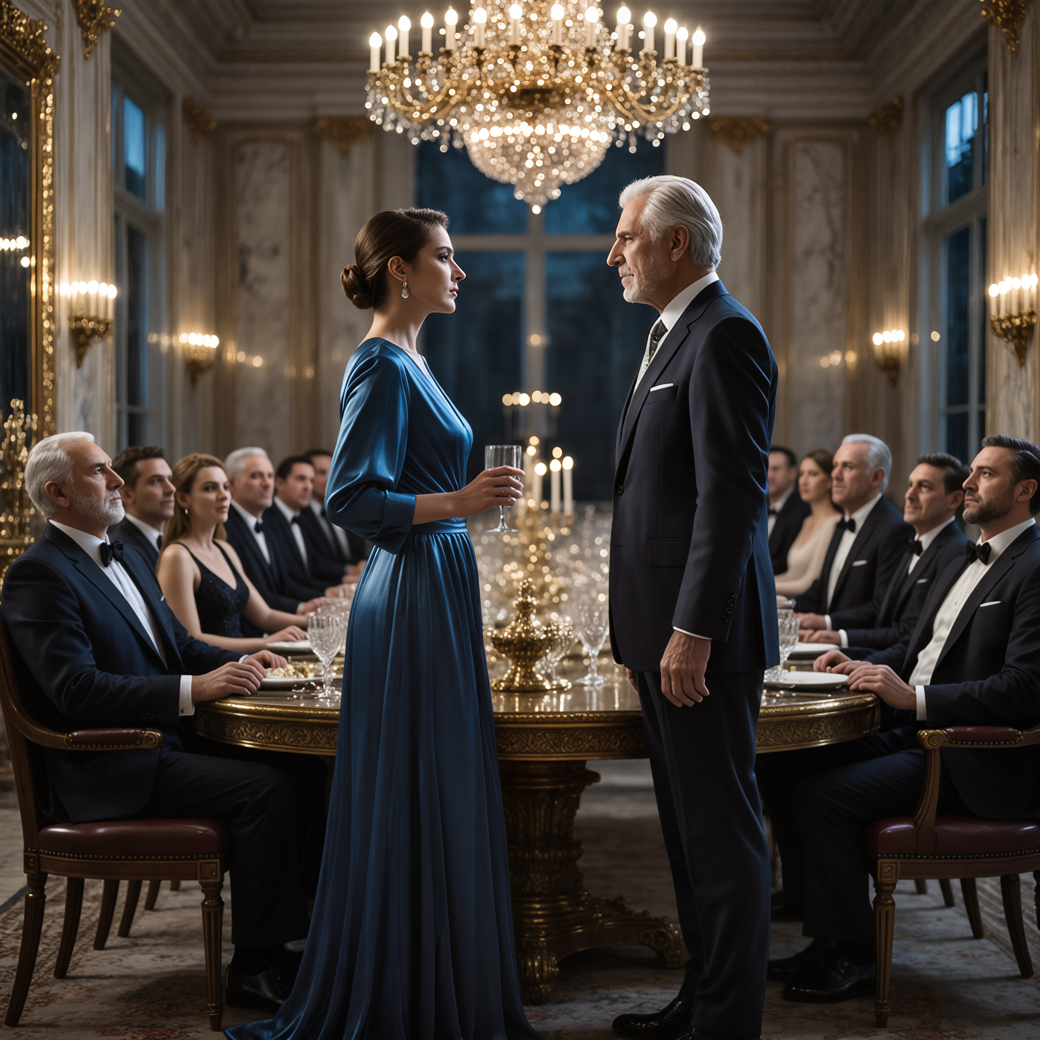 Friss virágok és drága parfüm illata lengte körül a levegőt. Az udvarias személyzet hangtalanul mozgott a vendégek között, kabátokat vett át, és pezsgőspoharakat kínált ezüst tálcán.