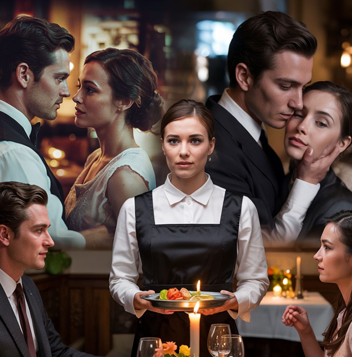 Ryan büszkén tekintett körbe, hiszen már megengedhette magának, hogy az egyik legexkluzívabb városi étteremben étkezzen. Ám amikor leültek, szeme egy távolabb mozgó pincérnőre szegeződött. Egyszerű, bézs színű kötényt viselt és ügyesen hordozta a tálcákat a vendégek között. Arcának irányát többször is megfordította, amíg egy pillanatra fel nem emelte tekintetét – ekkor Ryan levegője is elakadt.